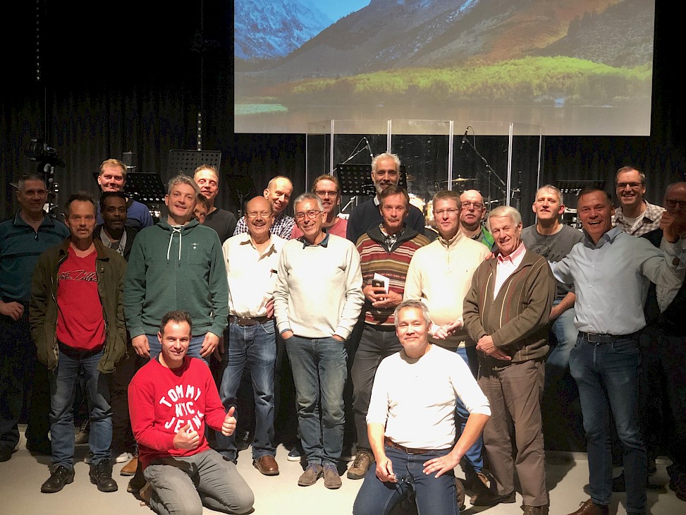 Deze avond wordt -2-maandelijks door de gemeente Nehemia Zwijndrecht en voor iedere man toegankelijk is buiten de gemeente. Op de foto zie je een mooie groep van ca. 25 mannen en stukadoor Pieter uit Middelharnis Goeree Overflakke (thanx a lot) had heerlijke kipsaté meegenomen.Tevens deelde vrachtwagenchauffeur Jan mooie boekjes uit over 'gebed'en 'overwinnend leven'. (thanx as well Jan) Op zo'n avond gaat het om: bijpraten, samen eten, wat drinken, God aanbidden, getuigenissen delen en ook een Woord delen.
